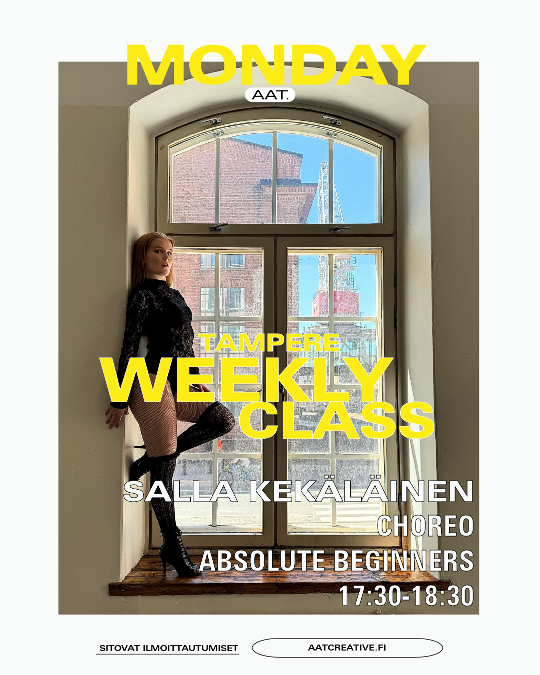 Missed classes: A person may make up a missed class during the same month in which the absence occurred. All absences and missed classes requests must be reported by email to dance@aatcreative.fi. We suggest a replacement class for you / you may also suggest a replacement class yourself, and you can make up your absence in advance as well. Replacement is not possible for fully booked classes Accepted reasons for absence include illness or an urgent matter, evaluated case by case. We do not offer missed classes for absences caused by traffic delays or weather conditions.